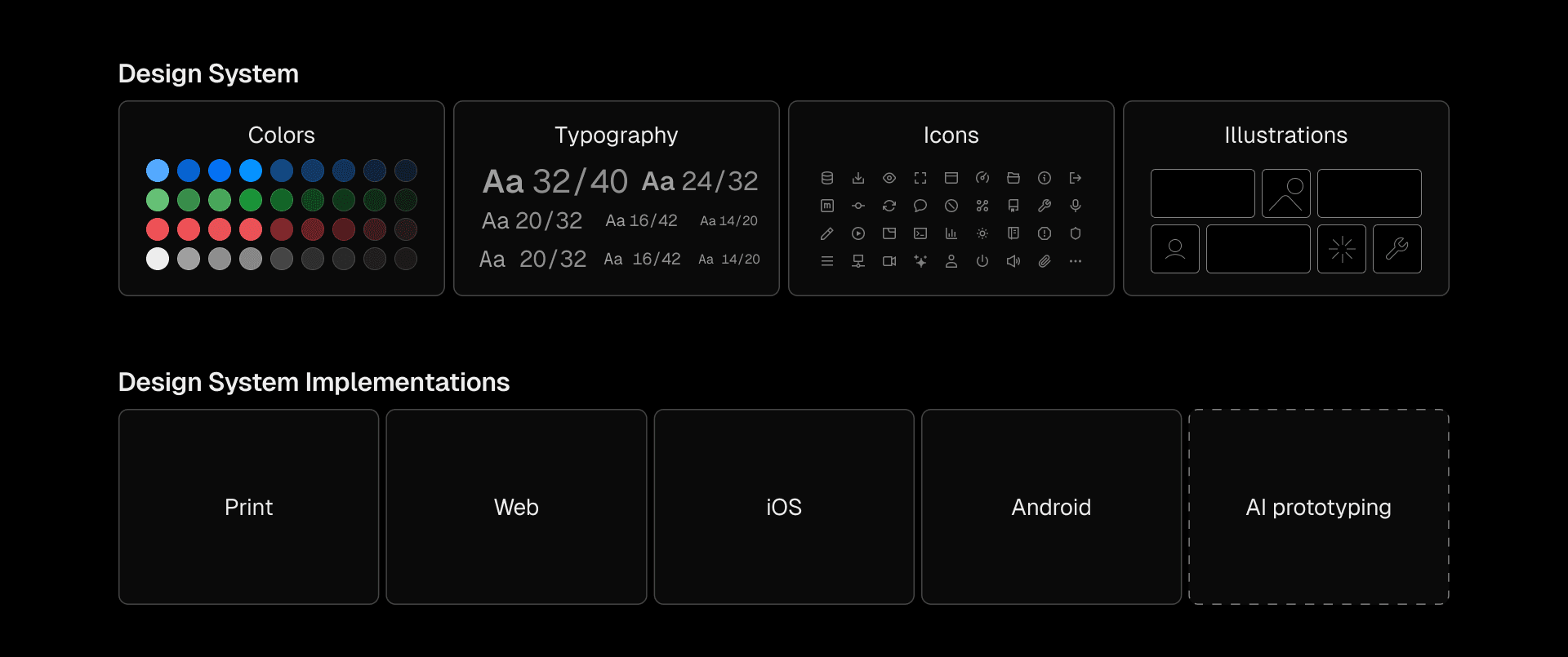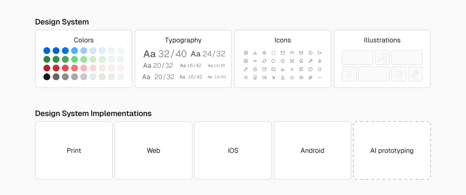 A design system captures this. It defines the visual language of your product through tokens, patterns, and structure. It includes decisions about color, type, spacing, motion, tone, and more. It reflects your brand and guides teams working across apps and platforms.