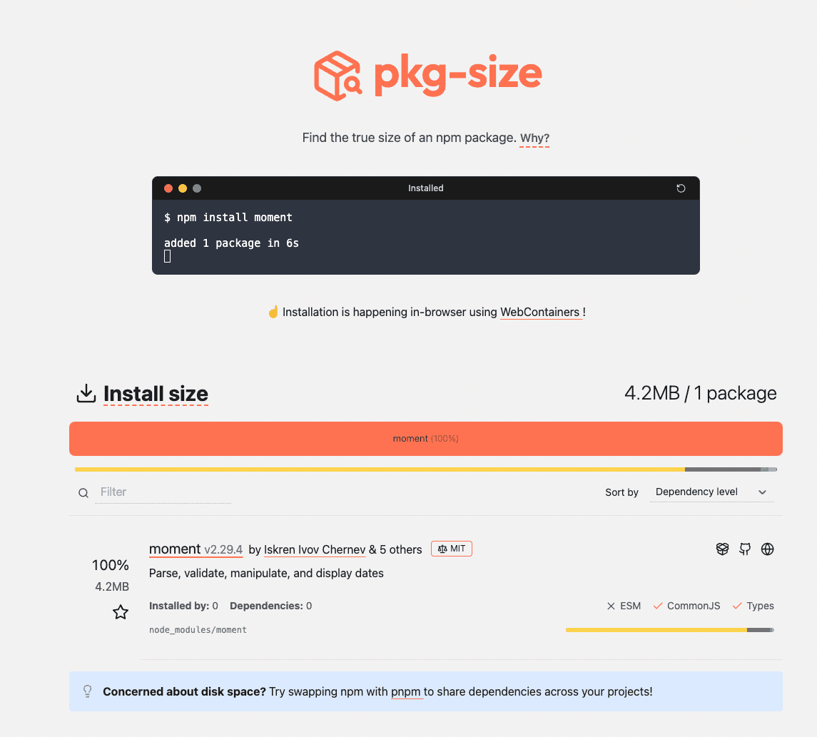 Link to headingBe mindful of third-party dependencies’ bundle sizes