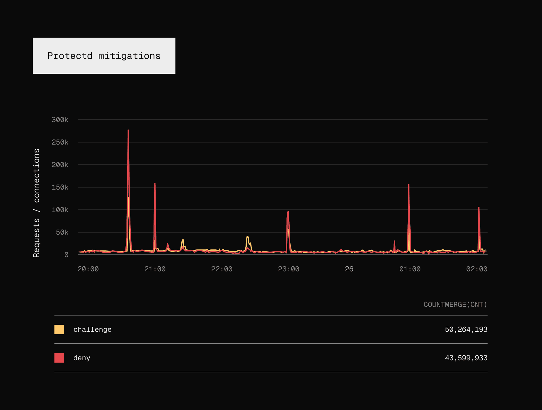 Now, we’re introducing Protectd, our next-generation real-time security engine. Running across all deployments, Protectd reduces mitigation times for novel DoS attacks by over tenfold, delivering faster, more adaptive protection against emerging threats.