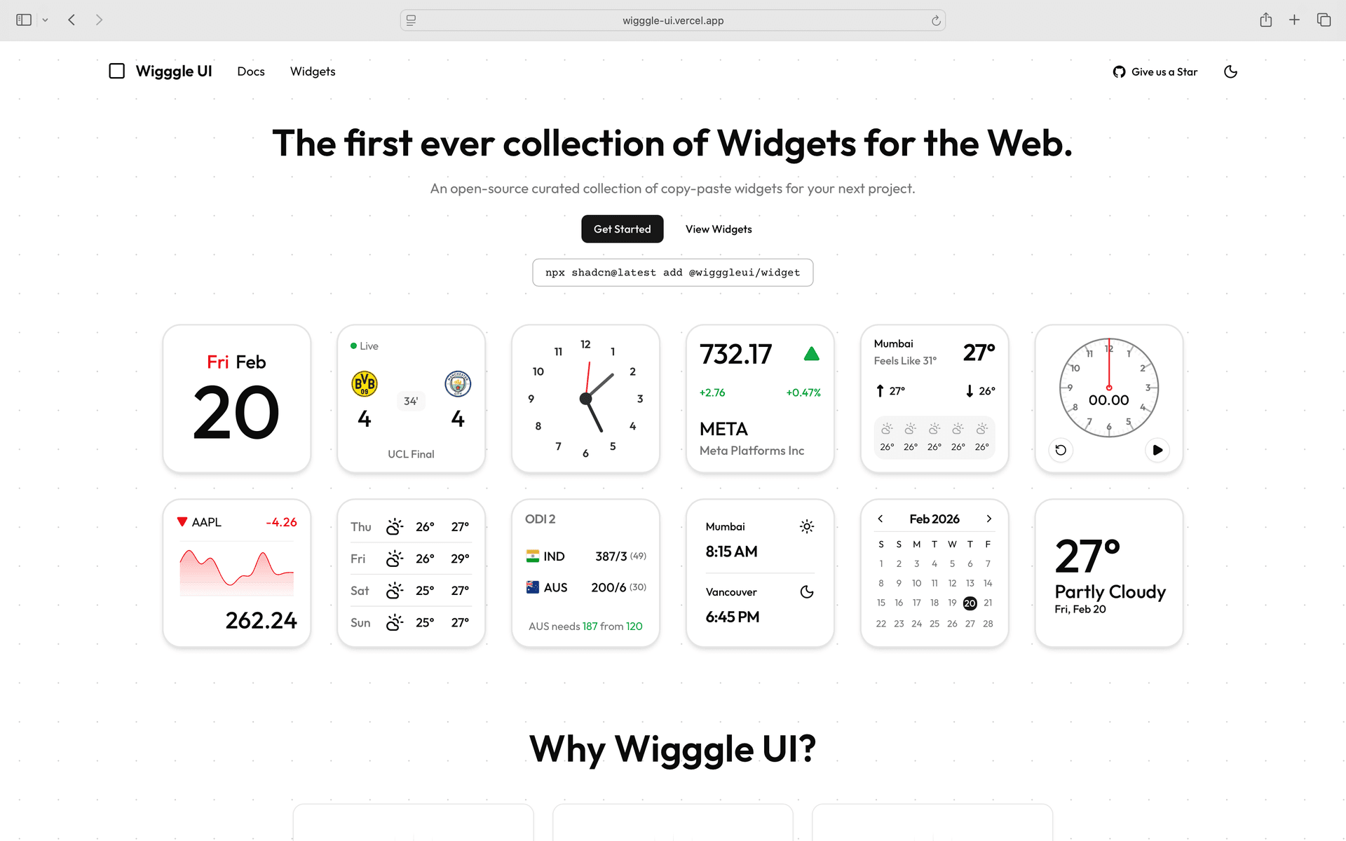 An open source library of simple, well-designed widgets for the web—bringing OS-style widgets into web apps, built on modern standards and shadcn/ui foundations.