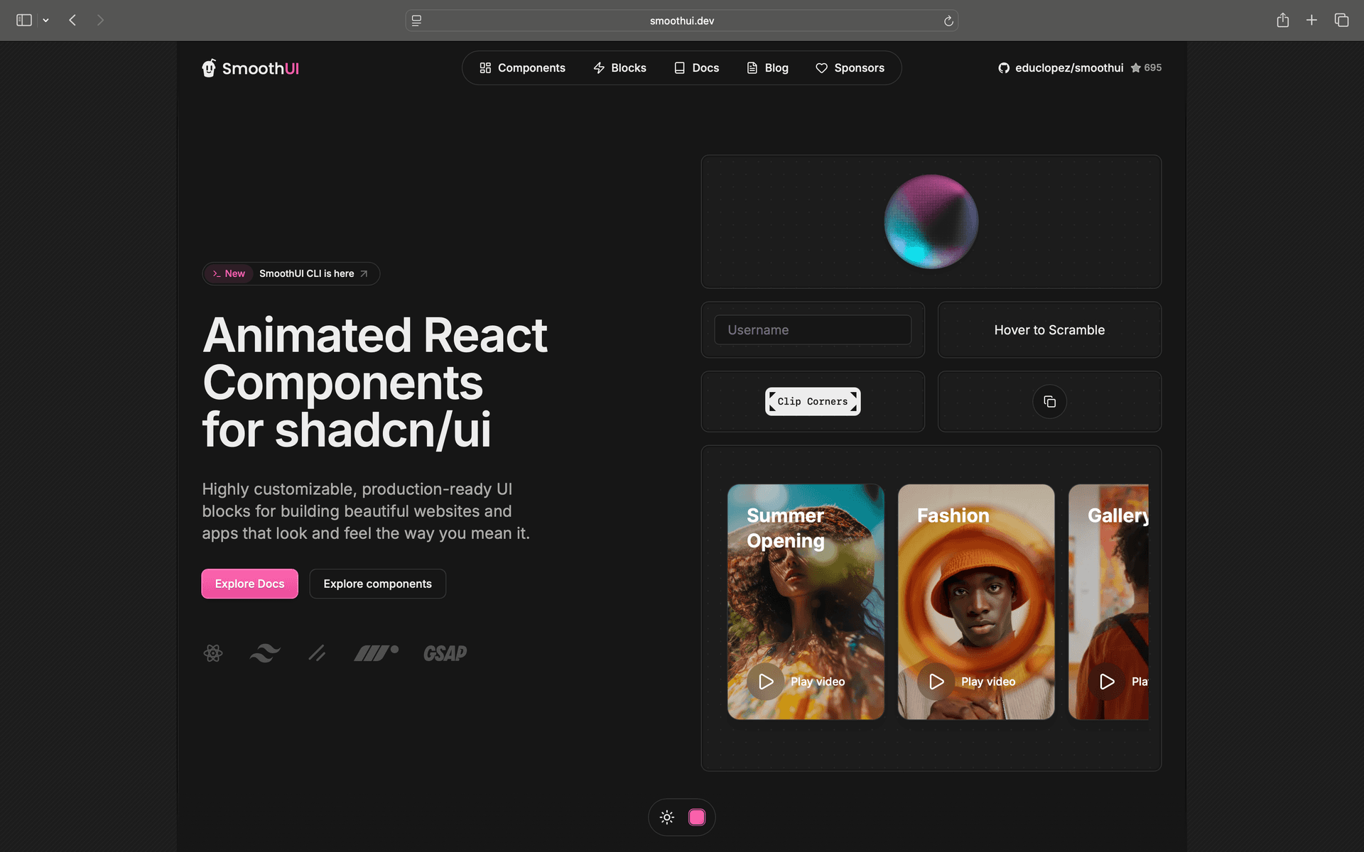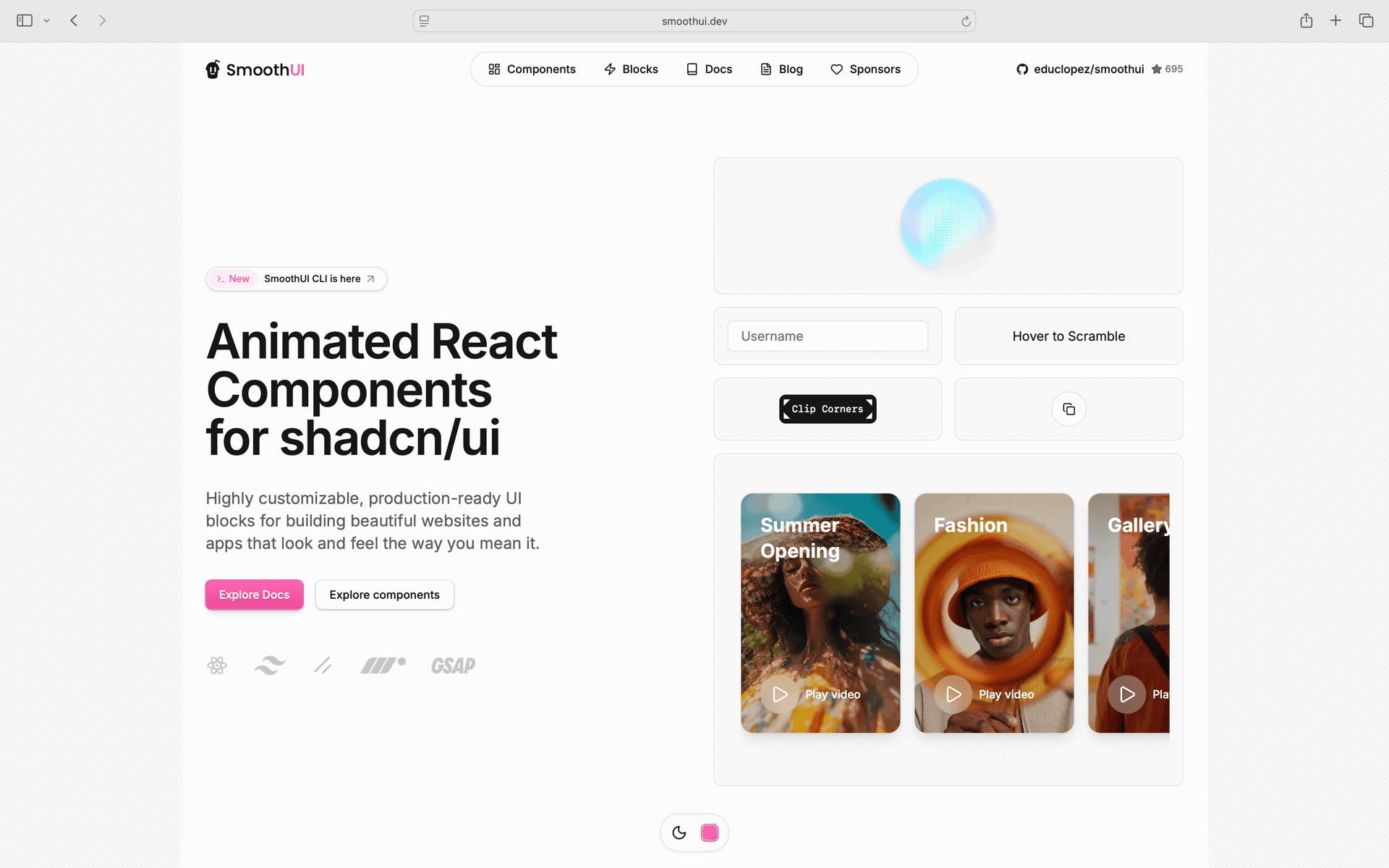 An open source front-end universe for React and Next.js with 100+ interactive components and motion-rich blocks—built to help developers ship beautiful UIs faster.