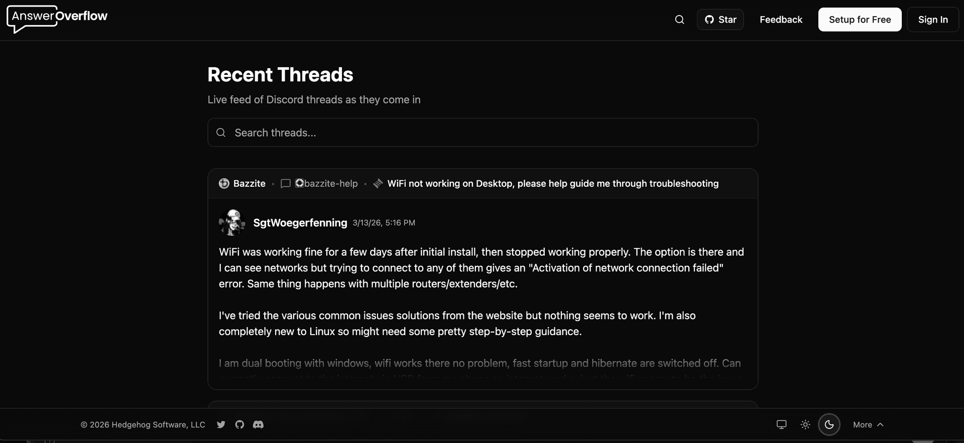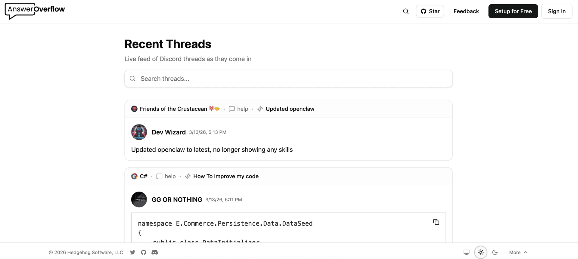 Answer Overflow is an open source project that makes the content sent in public Discord servers accessible to search engines and AI agents. Over 300+ communities use Answer Overflow to create web pages from their Discord content and it serves 1.5 million monthly active users.