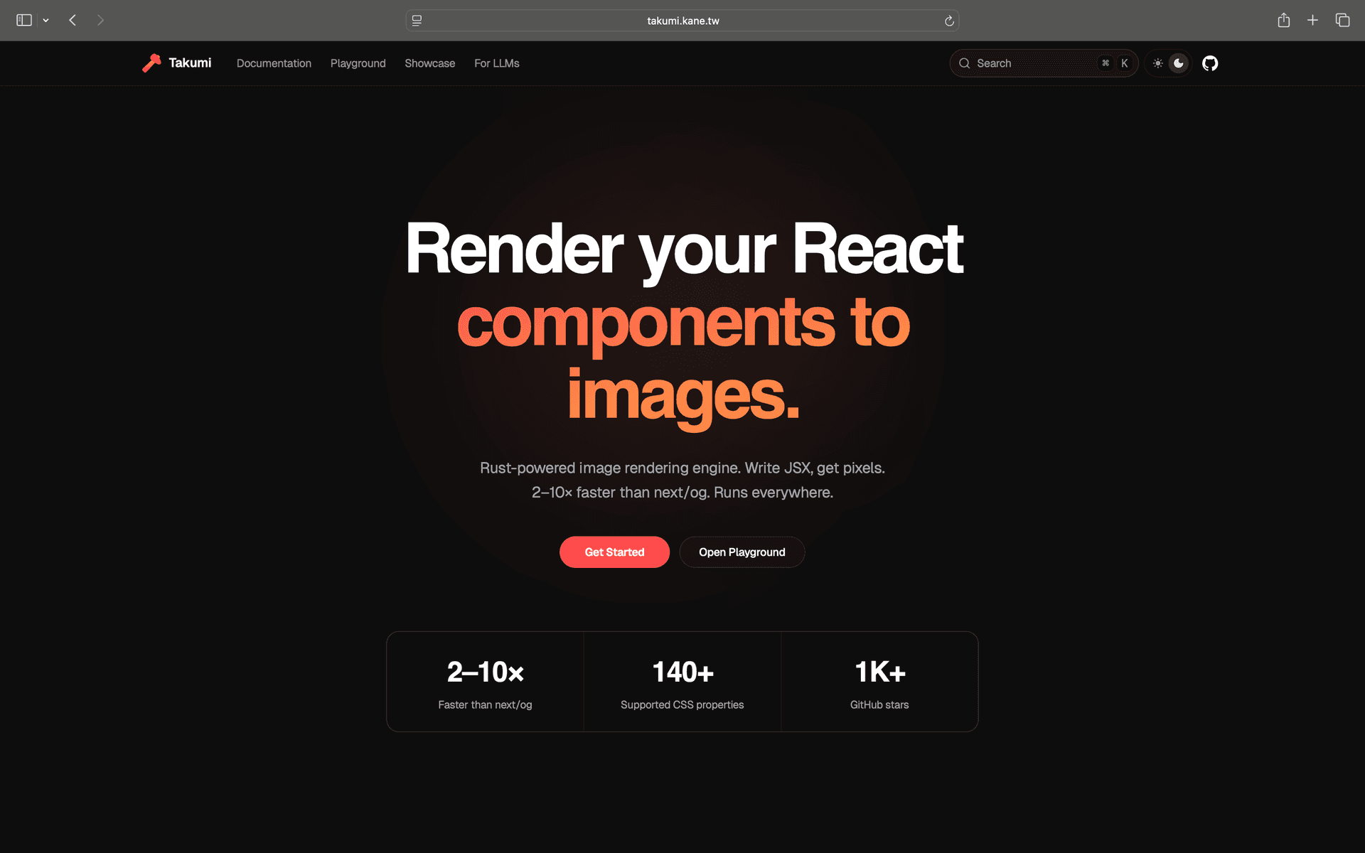 JSX → Image. A next/og alternative with more advanced features, with growing adoption across companies and open source projects.