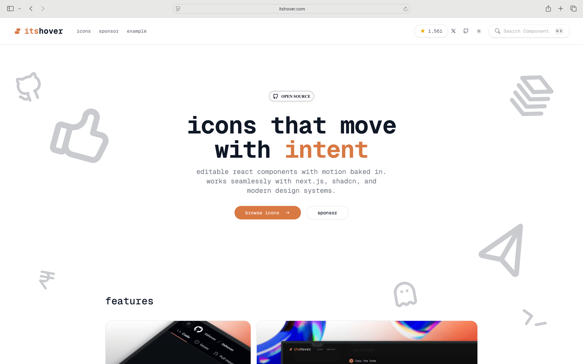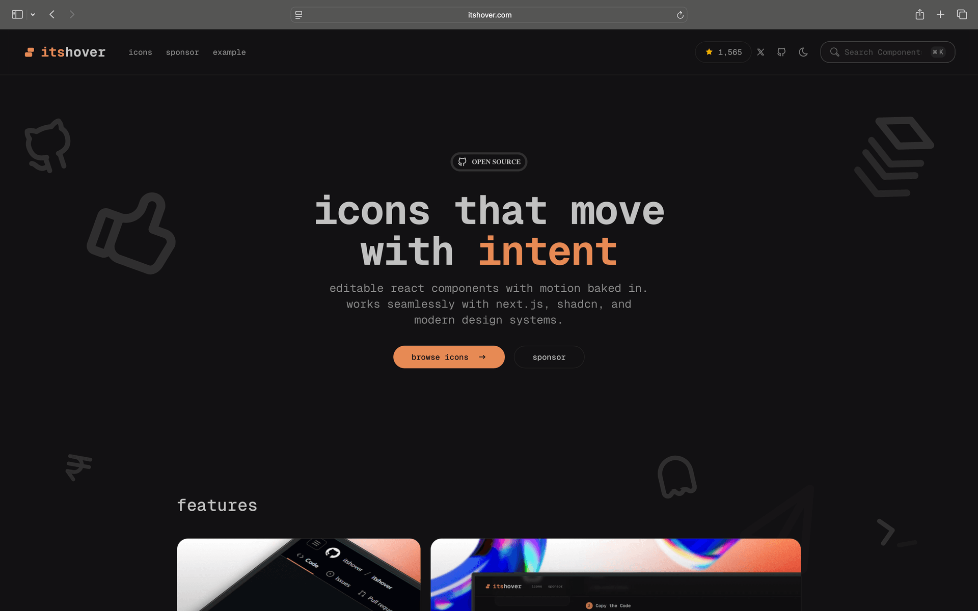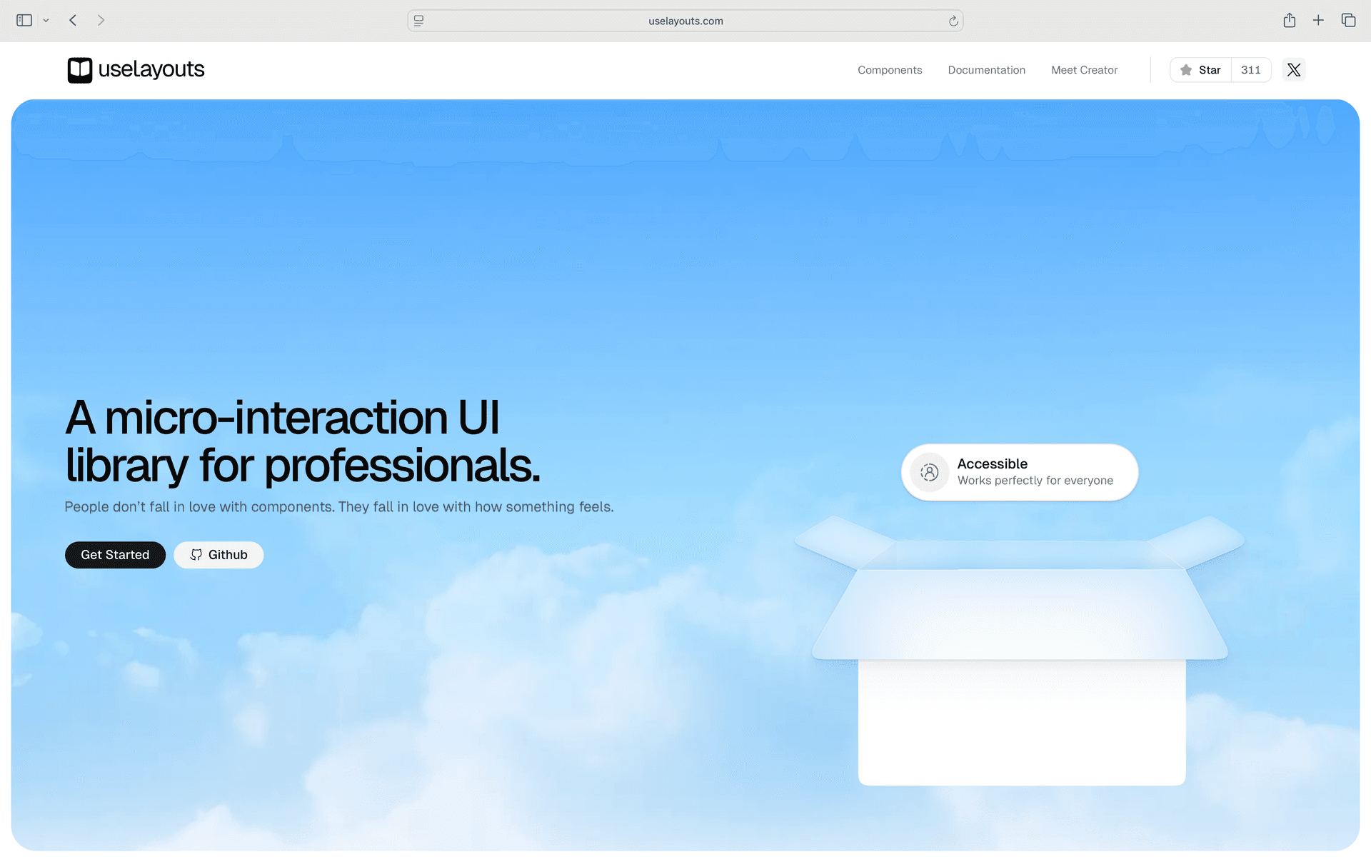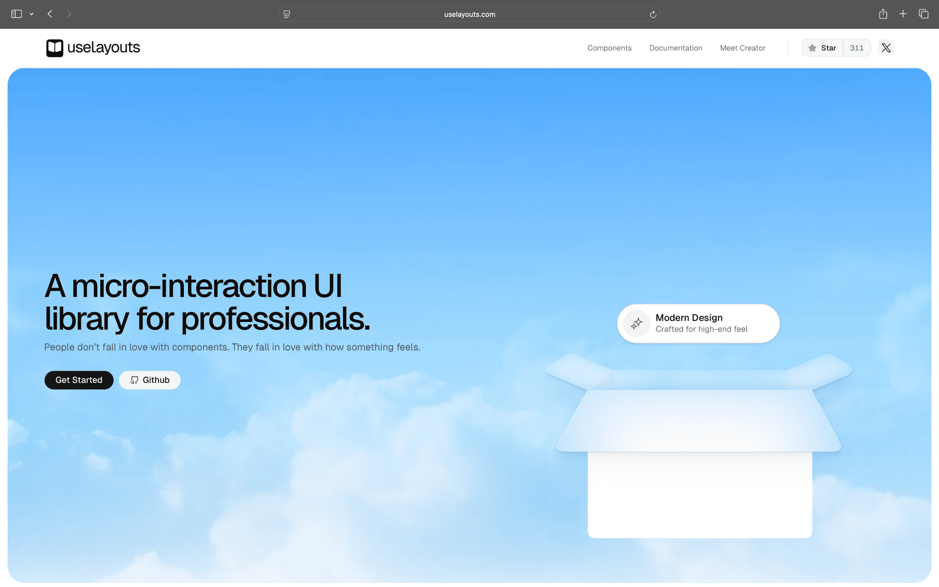 An open source animated UI components library offering ready-to-use motion components for free, built to help developers quickly add polish to interfaces.