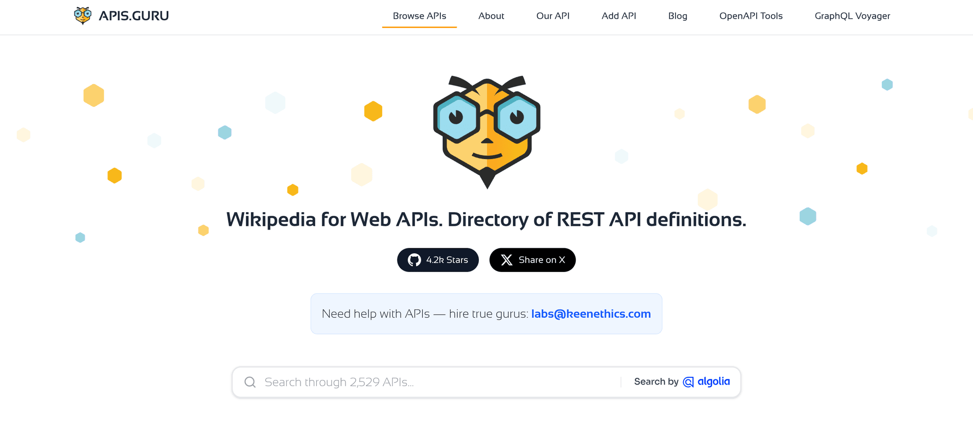 A directory and tooling hub for OpenAPI definitions of public APIs, used by thousands of developers and increasingly by LLM-driven workflows.