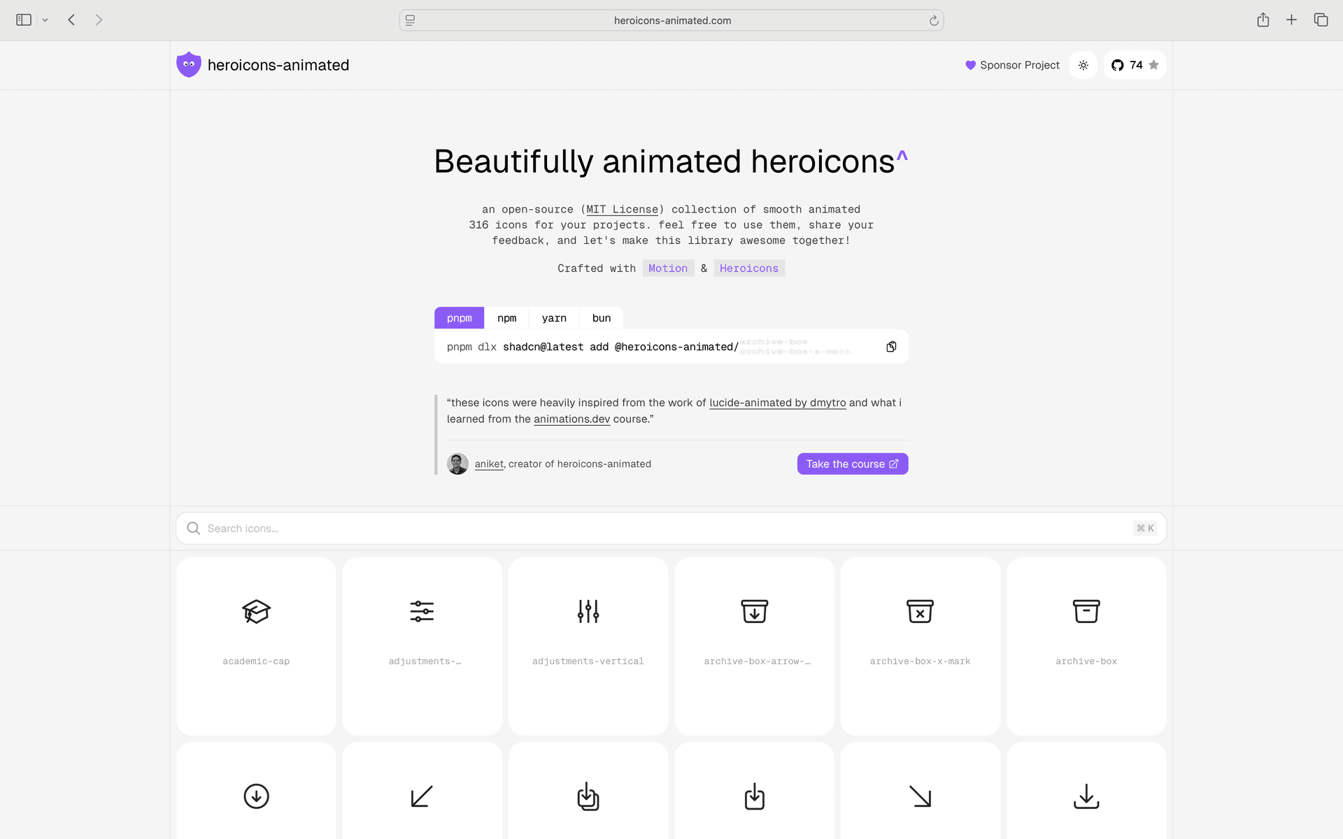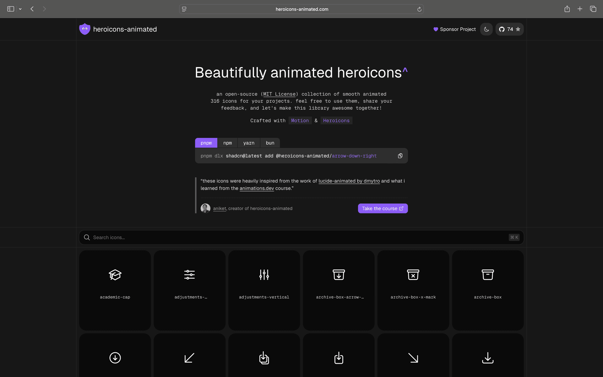 A free, open source library featuring hundreds of beautifully animated Heroicons for React, Vue, and Svelte—ready to drop into modern UIs.