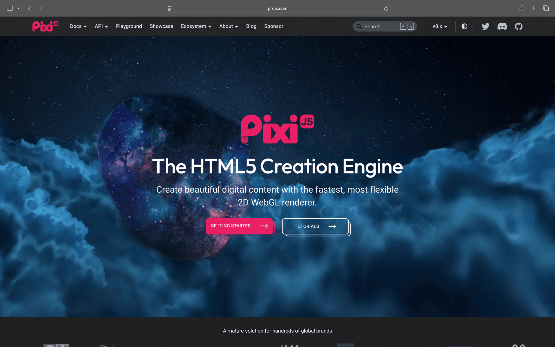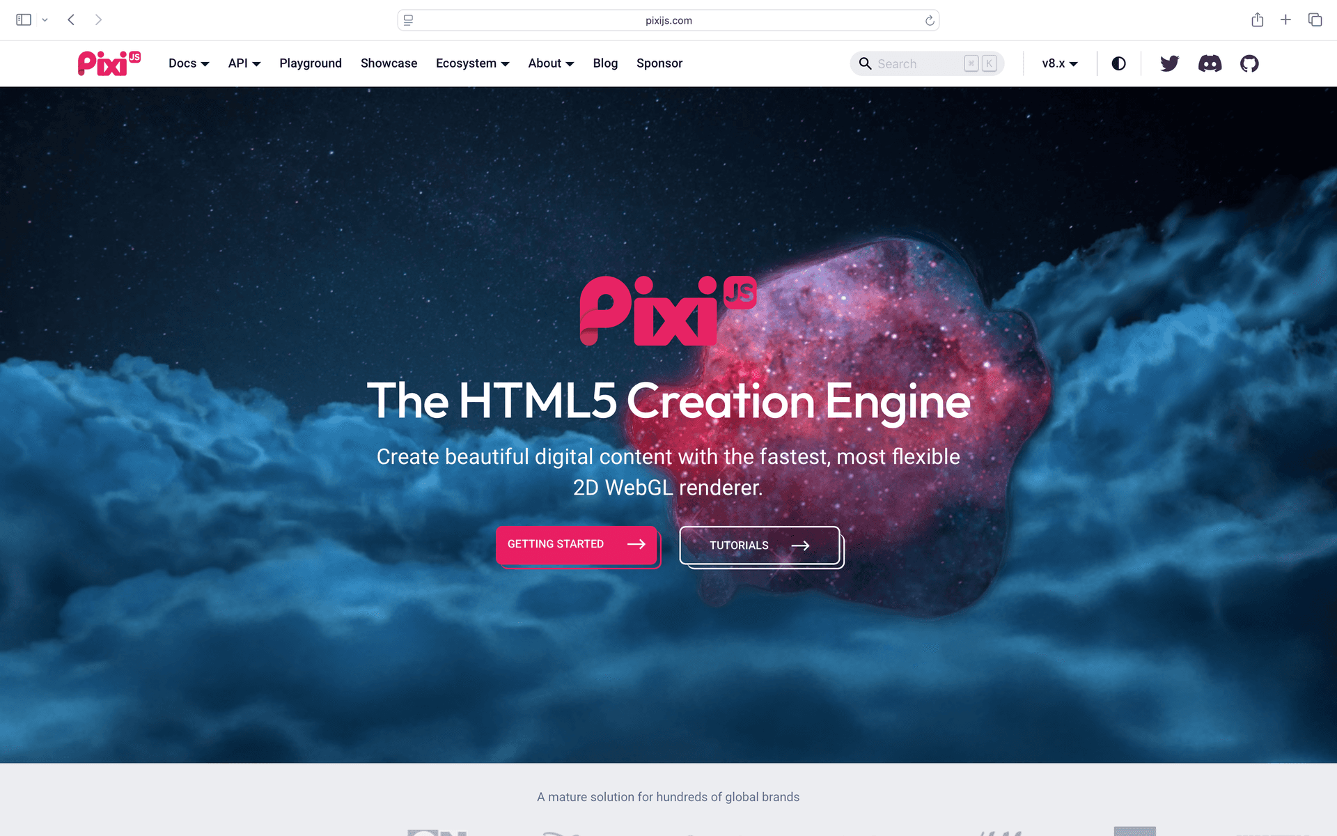 An open source 2D rendering engine for the web that powers fast, interactive graphics experiences across games, visualizations, and creative tooling.