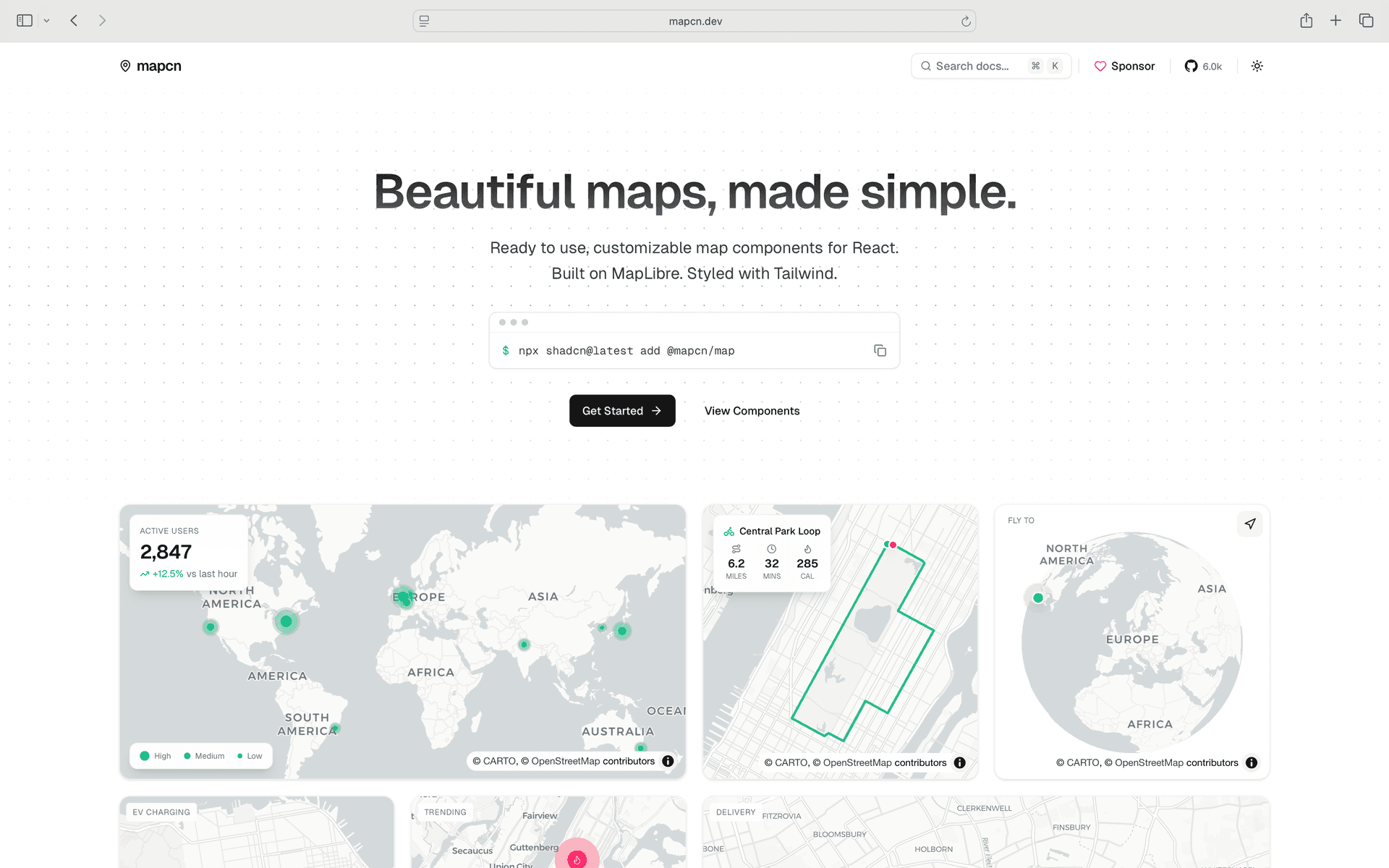An open source, copy-paste-friendly map components library for modern web apps, built to make map integration clean, composable, and design-consistent.