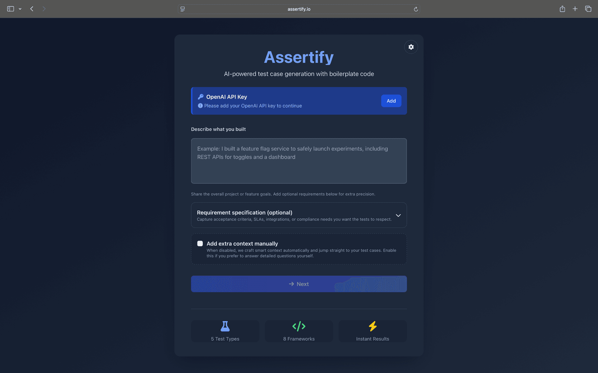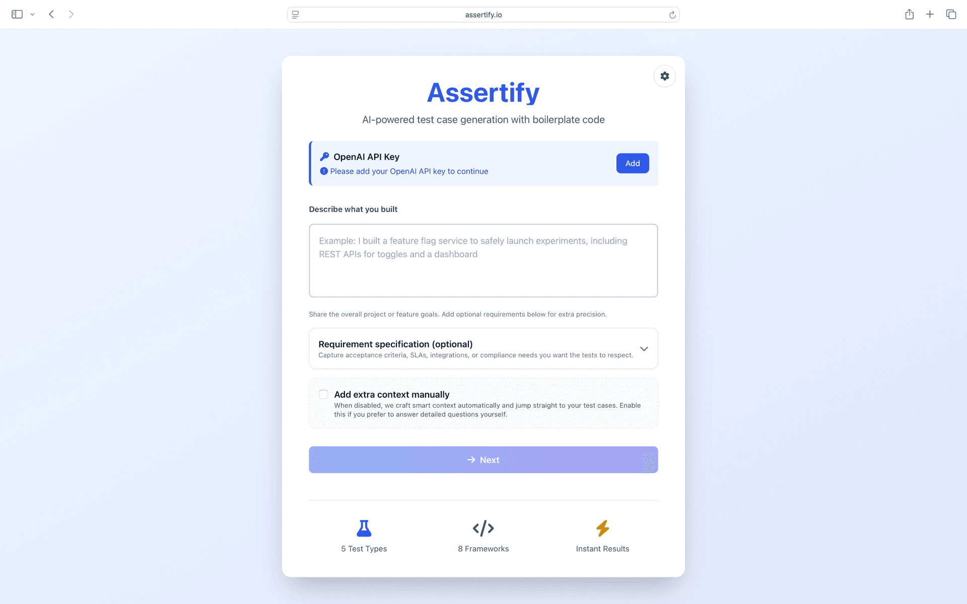 An open source, AI-powered test generation tool that produces framework-specific, production-ready tests—built to reduce the time and effort of maintaining automated test suites.