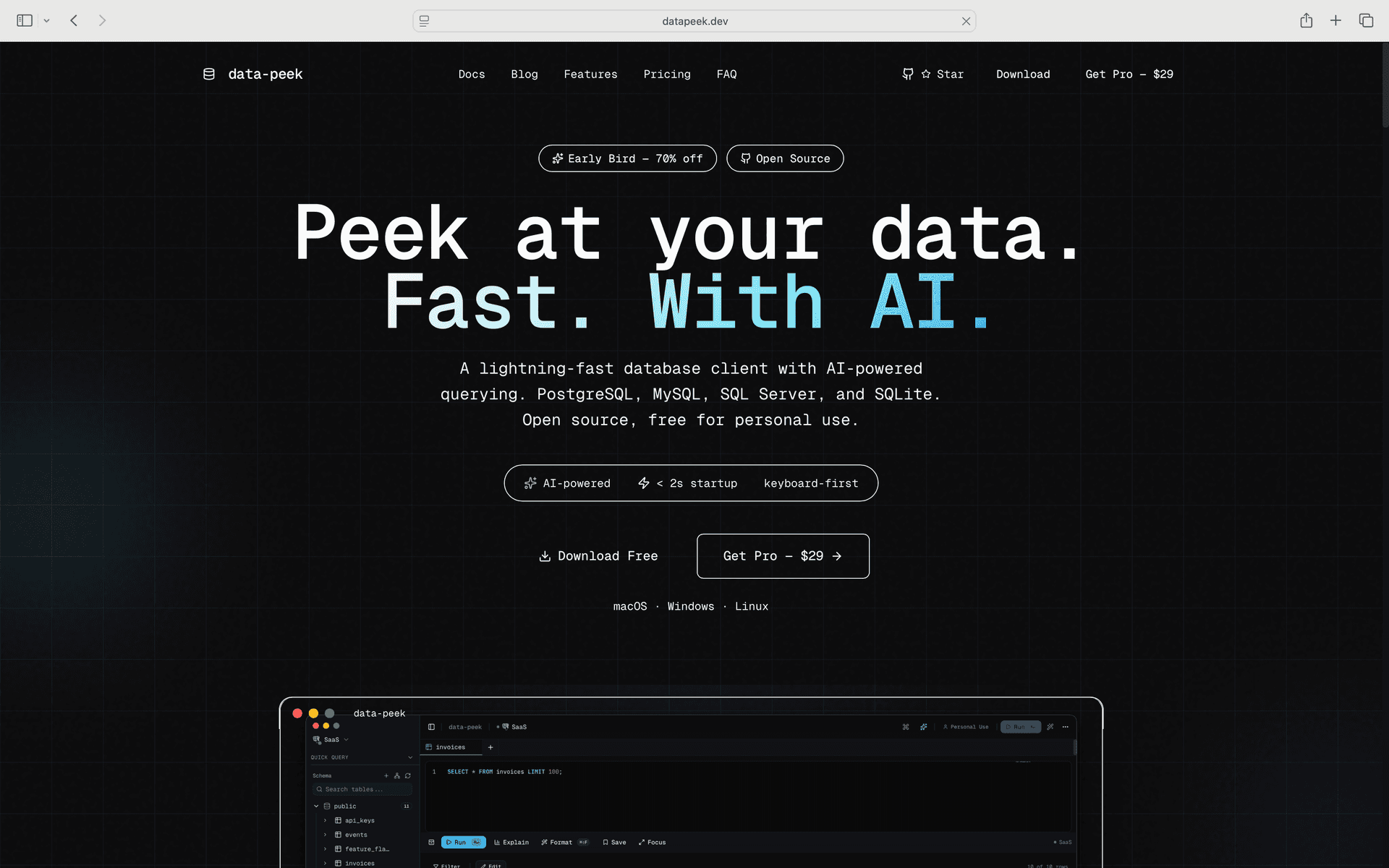 A lightweight, open source tool for exploring databases and SQL without the overhead of traditional clients—popular in education and among developers who want simplicity.