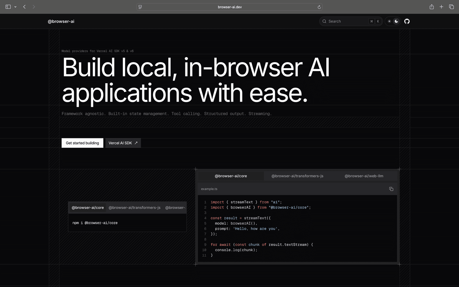 A TypeScript SDK for different in-browser AI model providers, built to make client-side AI integration simpler and more consistent across vendors.