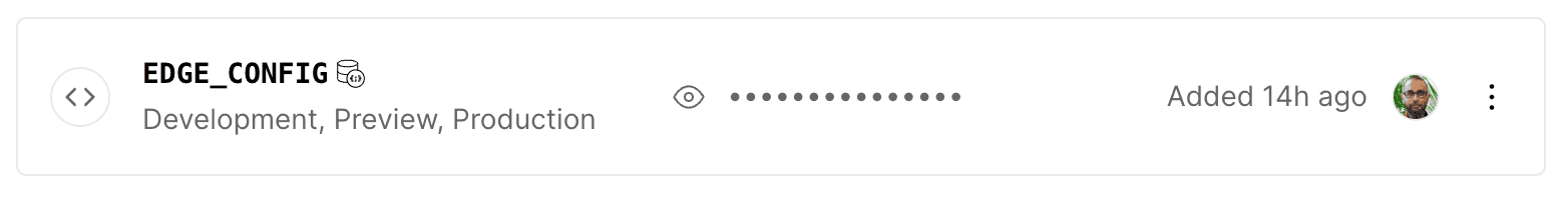 • You see the Edge Config icon on the row for the connected environment variable on the Environment Variables page of your project settings