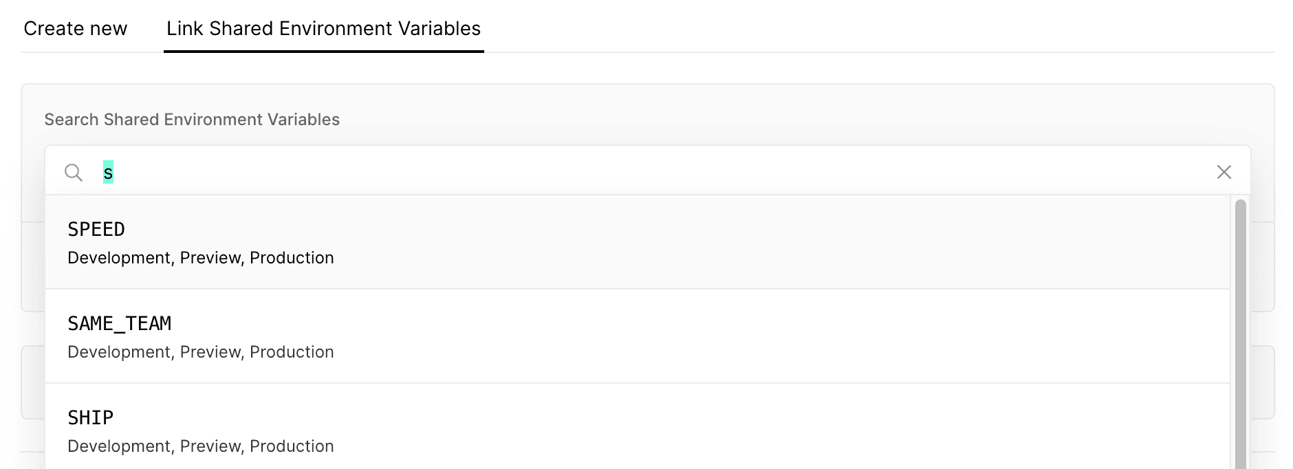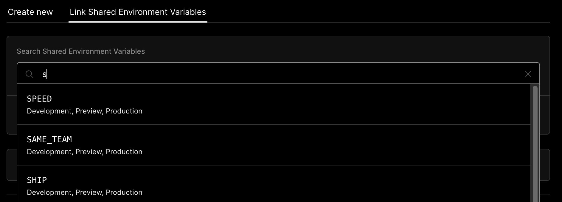 You can link an existing Shared Environment Variable to a project either at the project-level or the team-level.