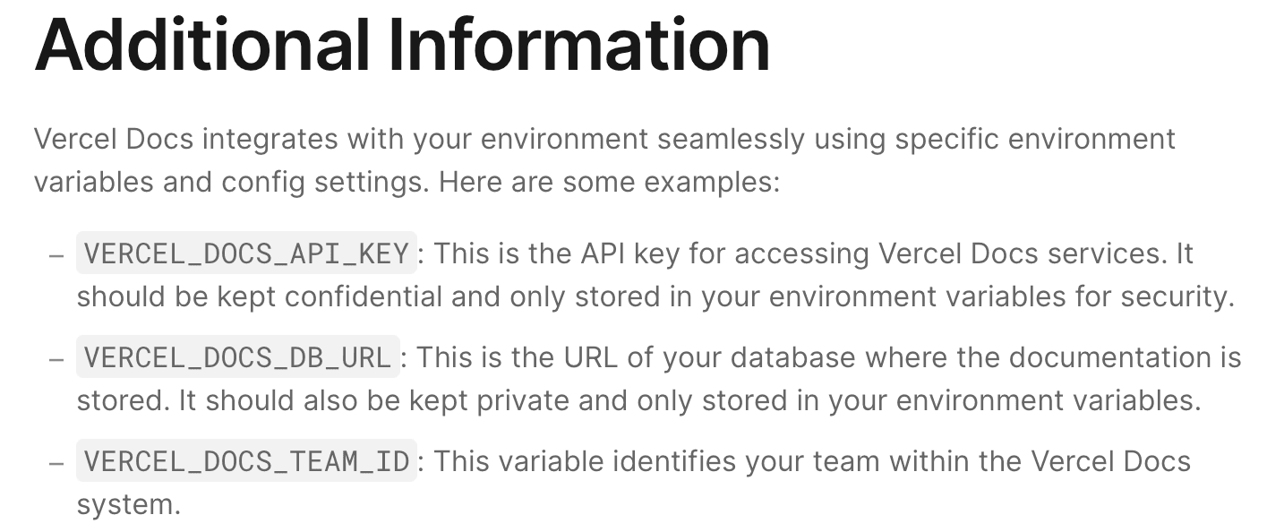 You are recommended to include links to get started guides for using your product with specific frameworks. Once your product is added by a Vercel user, these links appear on the product's detail page of the user's Vercel dashboard.