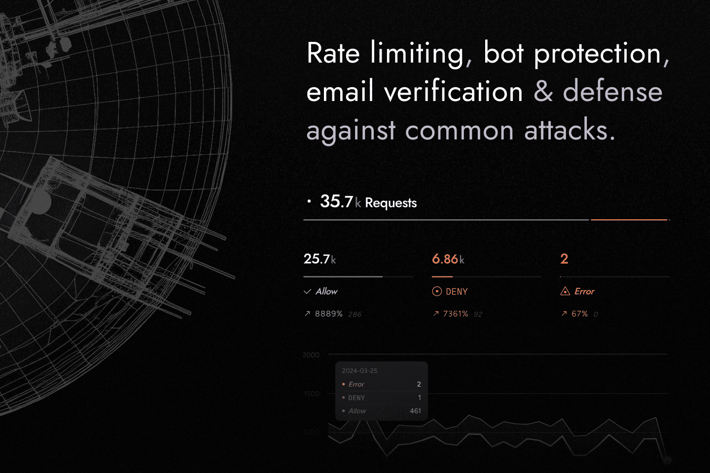 • Implement bot protection, rate limiting, email validation & more in just a few lines of code.
