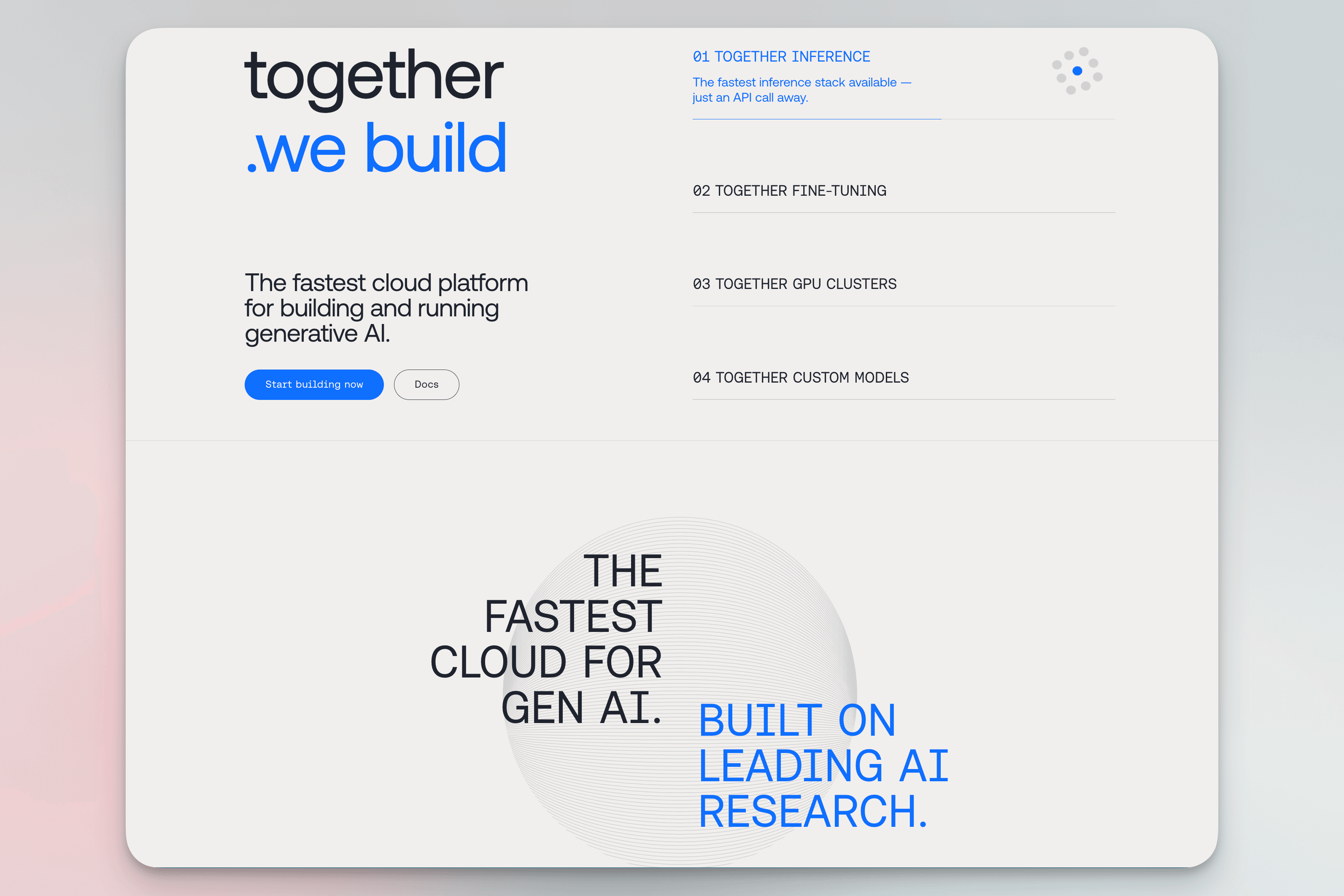 • Together Custom Models: Build state-of-the-art models from scratch with ease.