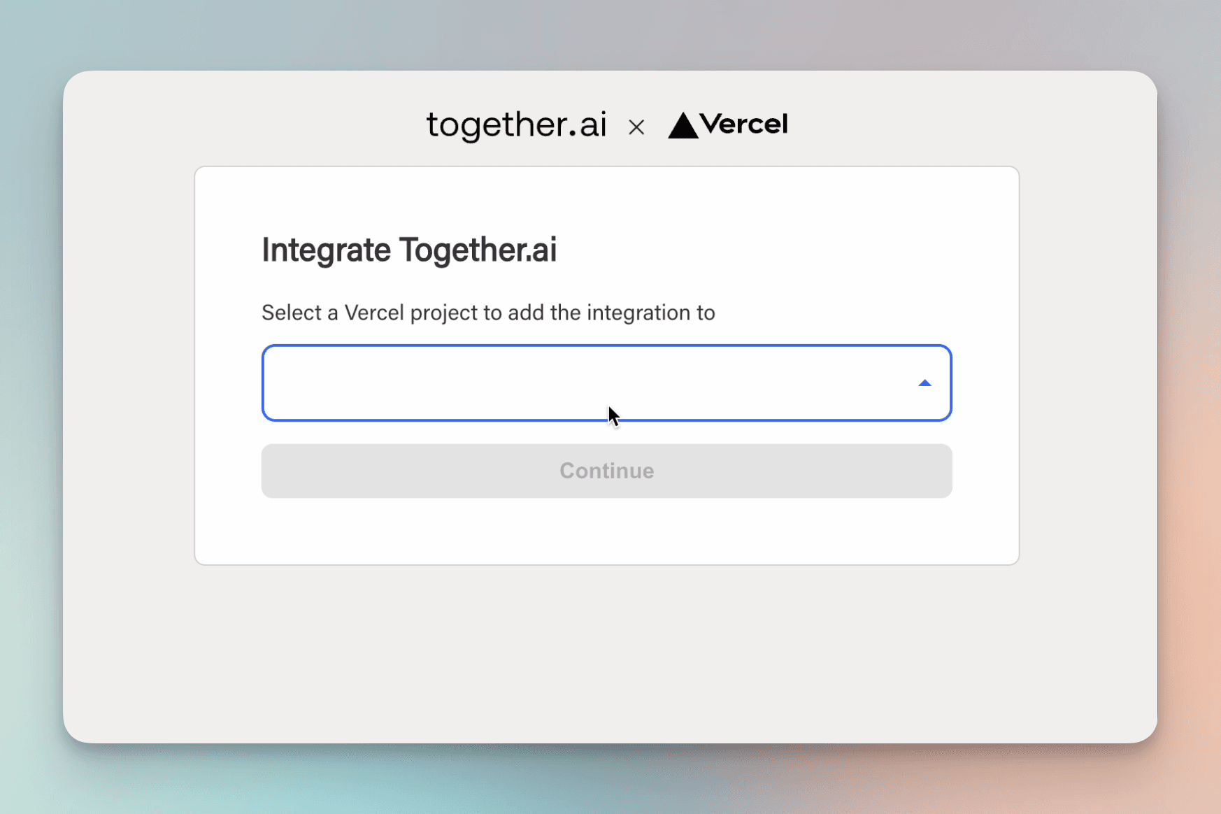 This integration will allow you to link your Together AI account with your Vercel projects to sync your Together API token into Vercel Environment Variables.