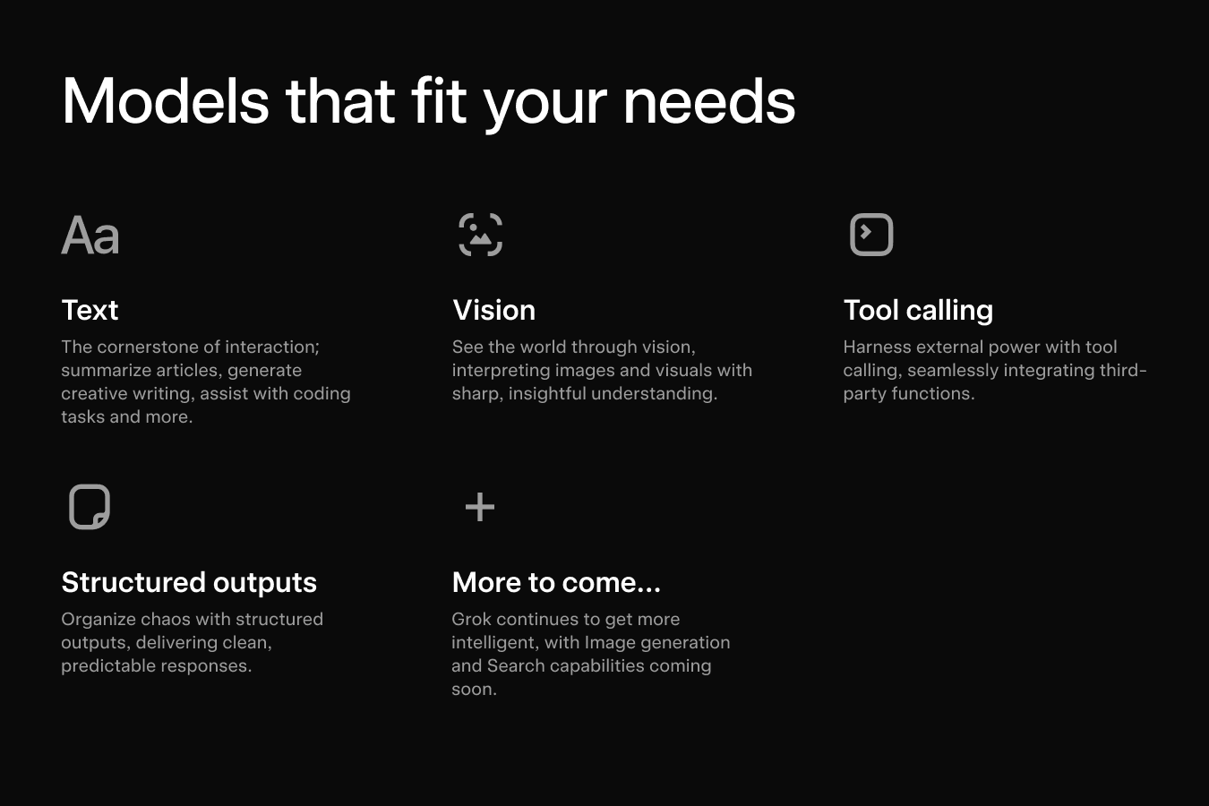 The xAI API is a toolkit for developers to integrate xAI's Grok models into their own applications, the xAI API provides the building blocks to create new AI experiences.